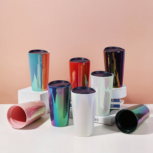 كوب إبداعي بلون معدني لامع بطبقة مزدوجة