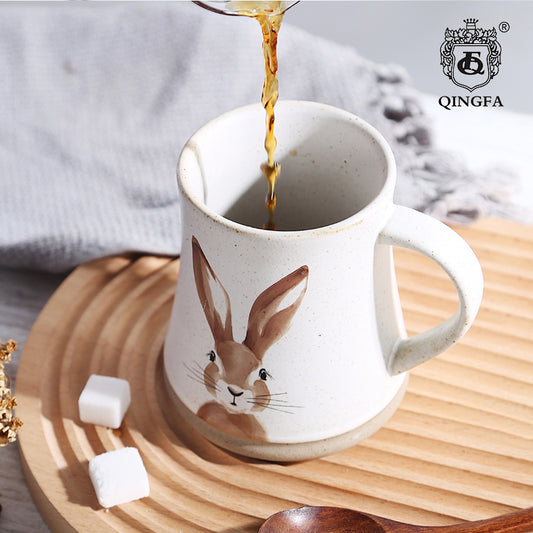 كوب إبداعي بنمط أرنب مرسومة يدويًا على طراز الخزف الحجري