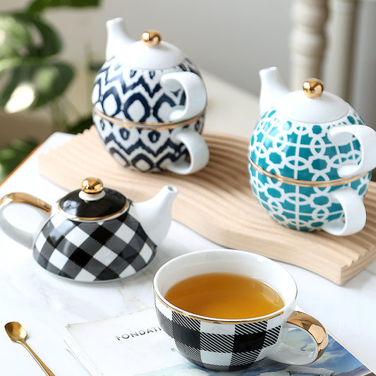 طقم إبريق شاي فاخر ومطعم بالذهب