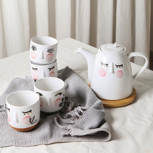 مجموعة إبريق شاي بوجه لطيف على شكل ألوان مائية